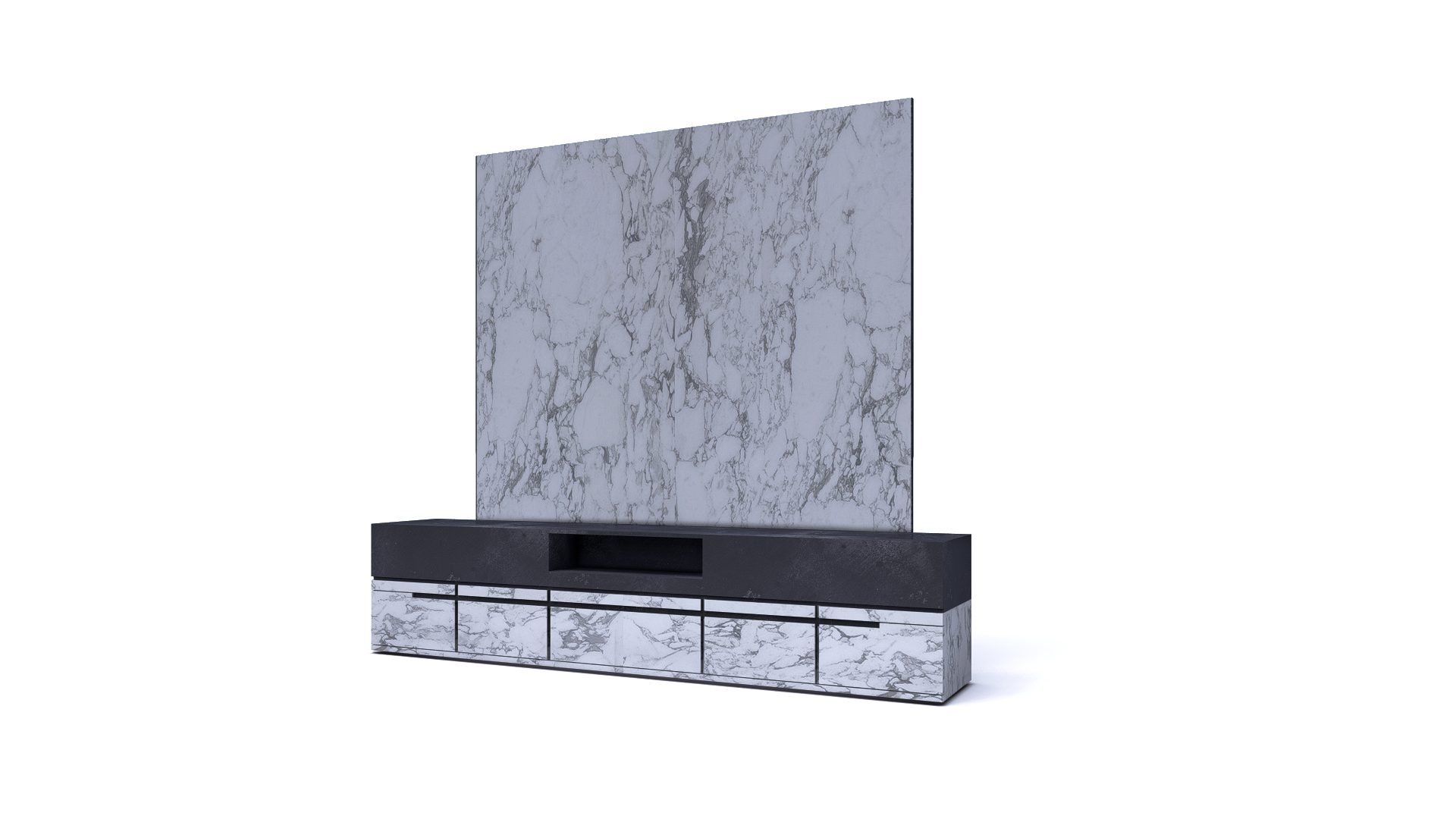 Mueble de T.V. en mármol Carrara o Marquina.